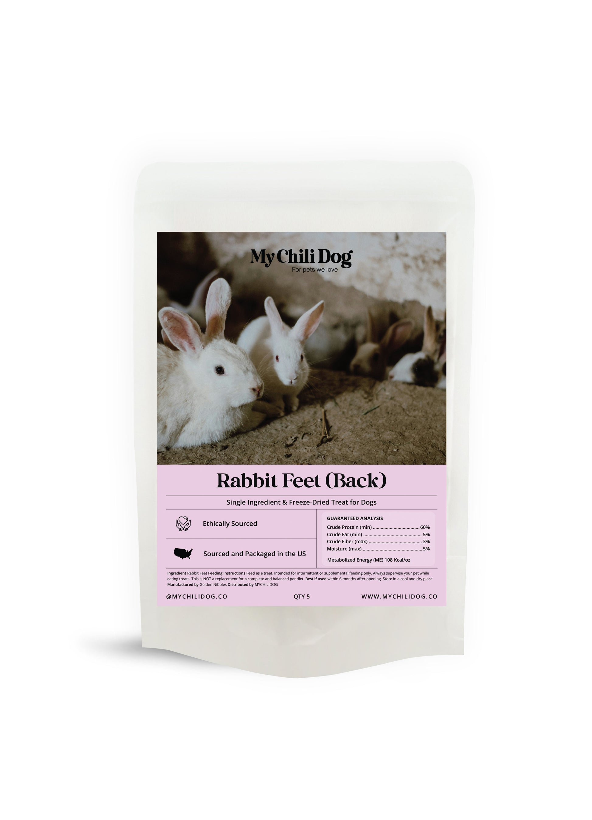 Ingredients: 100% Freeze Dried Rabbit Feet (5 count - Back Feet, 6 count - Front Feet)